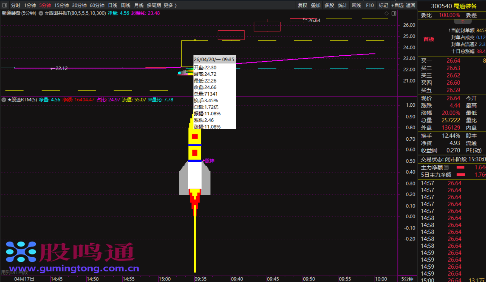 “股迷RTM”指标,用于高级版的智能监控分钟预警,特